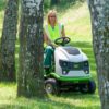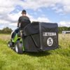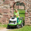 Unikalna konstrukcja urządzenia (bez tylnej osi jezdnej) gwarantuje bardzo wydajne koszenie i zbieranie nawet mokrej, wysokiej trawy oraz liści – bez zapychania! Rozwiązanie to znacznie skraca odległość pomiędzy agregatem koszącym i koszem, co zapewnia znacznie wydajniejszą pracę w trudnych warunkach (mokra, wysoka trawa) oraz przy dużych prędkościach roboczych dochodzących do 12 km/h (w zależności od ukształtowania terenu),