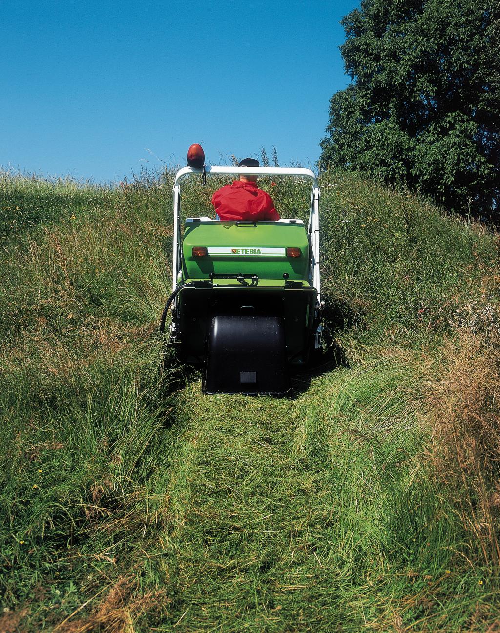 Unikalna konstrukcja urządzenia (bez tylnej osi jezdnej) gwarantuje bardzo wydajne koszenie i zbieranie nawet mokrej, wysokiej trawy oraz liści – bez zapychania! Rozwiązanie to znacznie skraca odległość pomiędzy agregatem koszącym i koszem, co zapewnia znacznie wydajniejszą pracę w trudnych warunkach (mokra, wysoka trawa) oraz przy dużych prędkościach roboczych dochodzących do 16 km/h (w zależności od ukształtowania terenu),
